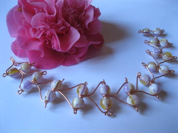 Elégant Bracelet Cuivre et Perls en Verre Couleurs Pastel - B1011