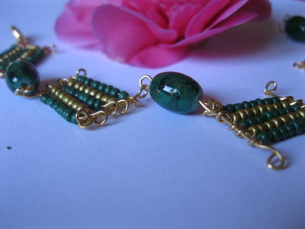 Bracelet en Perles de Rocaille Vert Forêt et Doré - Élégance Naturelle