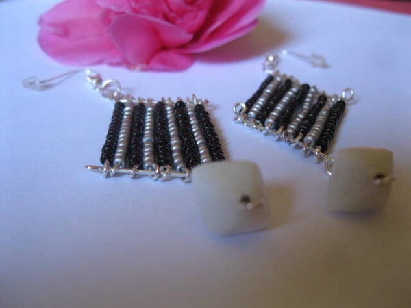 Boucles d'Oreilles perles de rocailles noire et argent - Éclat Naturel E1017