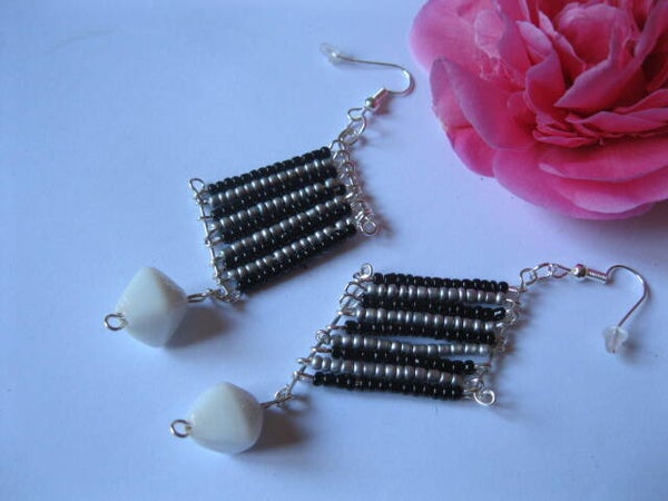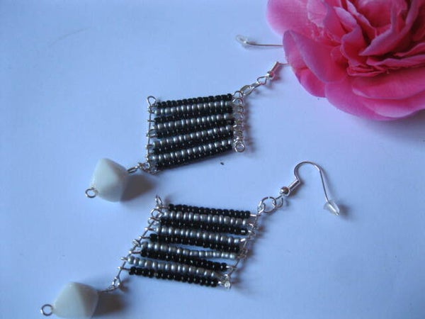 Sublimez votre style avec ces magnifiques boucles d'oreilles, une création unique qui capture l'essence de la nature avec une touche de sophistication. Conçues en forme de diamant, ces boucles d'oreilles sont ornées de perles de rocailles noire et argent, offrant un contraste élégant et harmonieux.