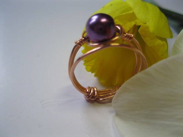 Bague Délicate en Fil de Cuivre avec Perle Violette - R1062