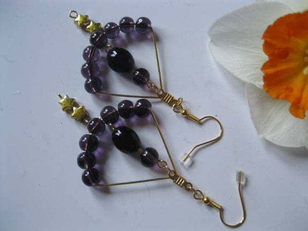 Ces boucles d'oreilles en améthyste violettes foncé et noires sont un véritable bijou de sophistication. Leur design en forme de losange, orné de perles scintillantes et d'une touche d'étoiles dorées, en fait un accessoire incontournable pour les amateurs de style raffiné. Parfaites pour sublimer vos soirées ou vos tenues de tous les jours