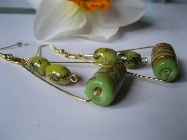 Boucles d'oreilles géométrique avec perles vert et orange - E1103